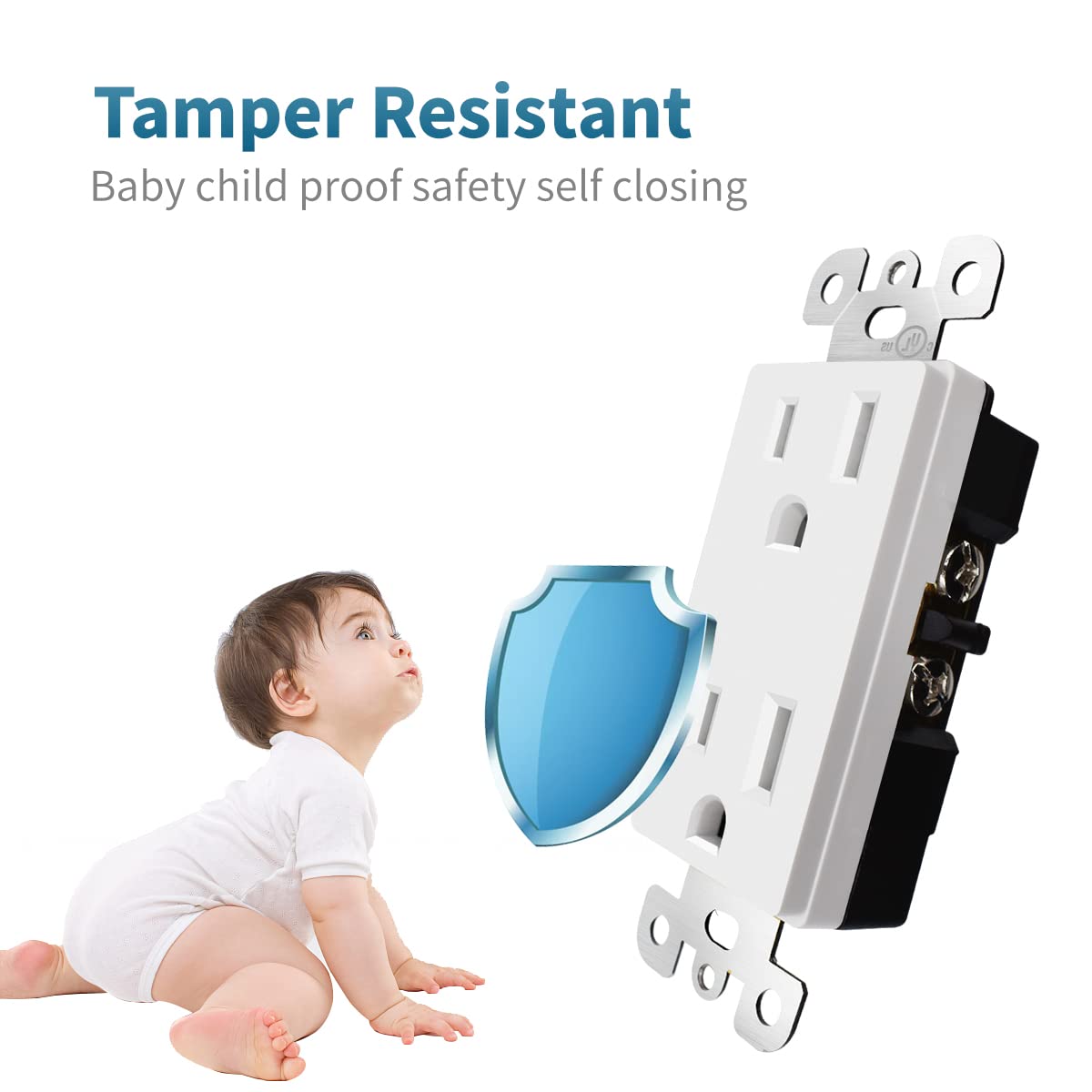 - 【Tamper Resistant】 Decorator outlets feature a sophisticated tamper-resistant design with an internal shutter mechanism that blocks access to the contacts unless a proper plug is inserted.