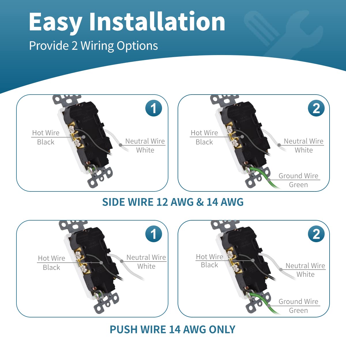 - 【Self-Grounding】 A green grounding screw and self-grounding clip provide for automatic grounding in the junction box can protect electrical appliances and effectively avoid electrical damage from strong electric charges and also protect you from electrical shock.